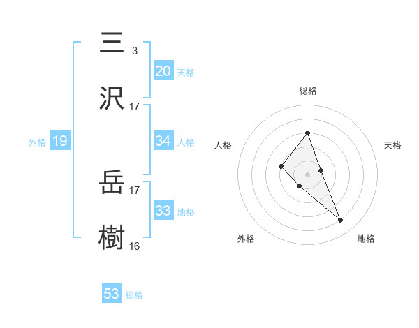三沢 岳樹さんを姓名の画数から五運を鑑定