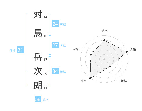 対馬 岳次朗さんを姓名の画数から五運を鑑定