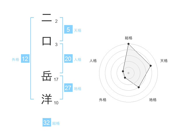 二口 岳洋さんを姓名の画数から五運を鑑定
