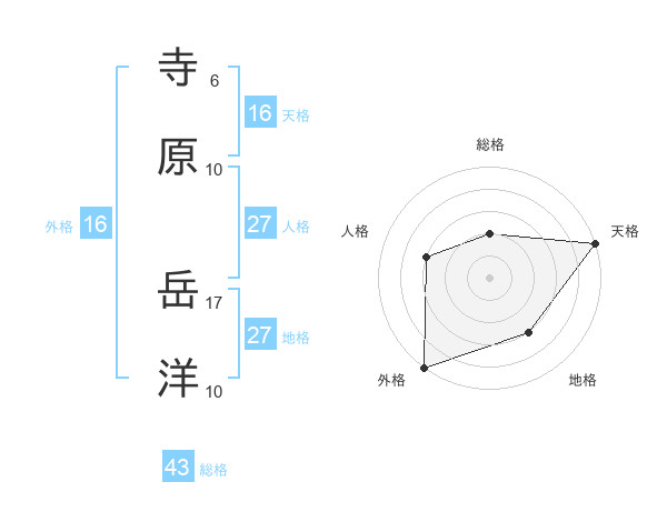 寺原 岳洋さんの天格は16画の5点!
