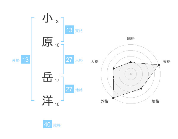 小原 岳洋さんを姓名の画数から五運を鑑定