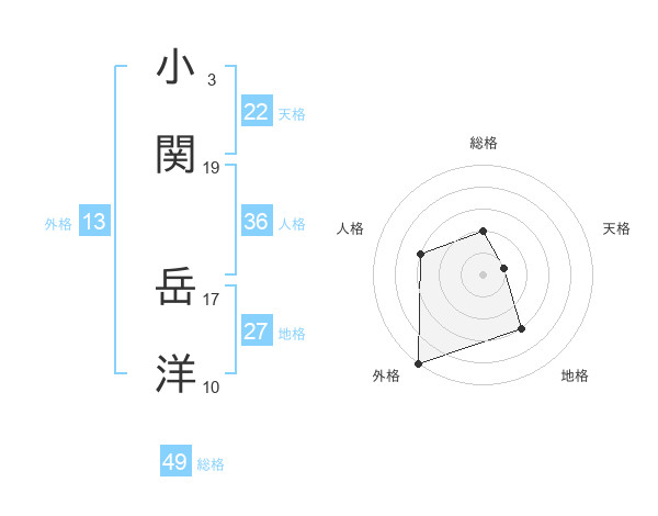 小関 岳洋さんを姓名の画数から五運を鑑定
