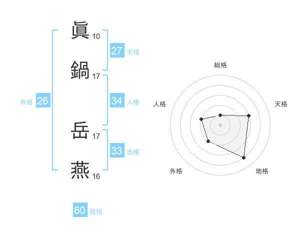 眞鍋 岳燕さんを姓名の画数から五運を鑑定