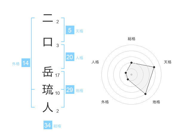 二口 岳琉人さんを姓名の画数から五運を鑑定