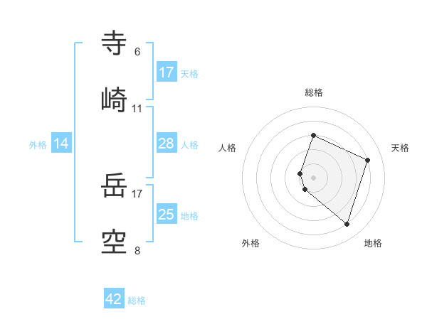 寺崎 岳空さんの天格は17画の4点