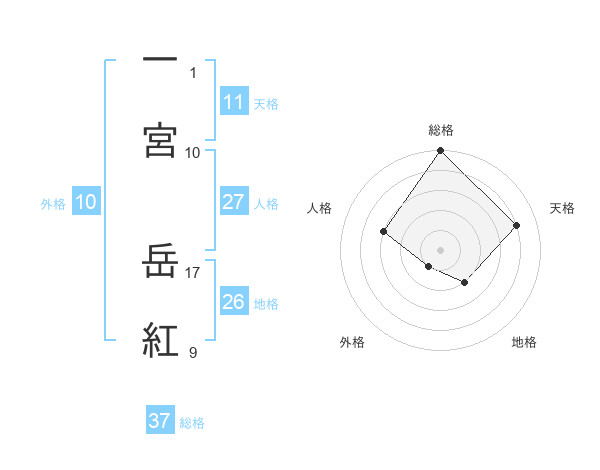 一宮 岳紅さんの総格は37画の5点!