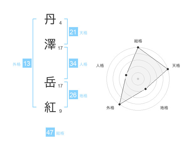 丹澤 岳紅さんの外格は13画の5点!