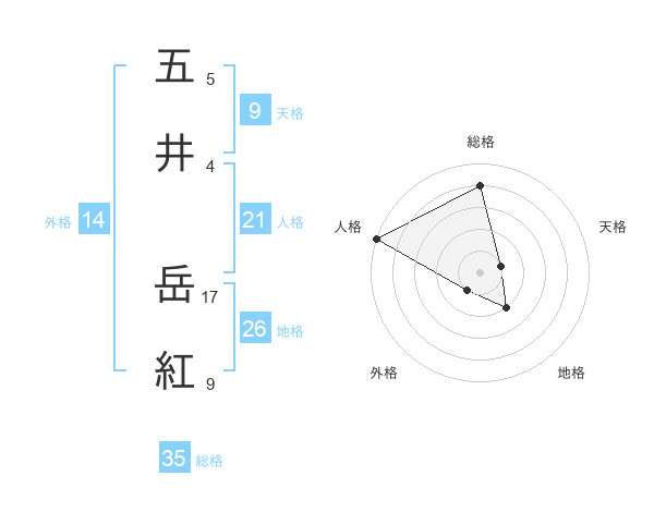 五井 岳紅さんを姓名の画数から五運を鑑定
