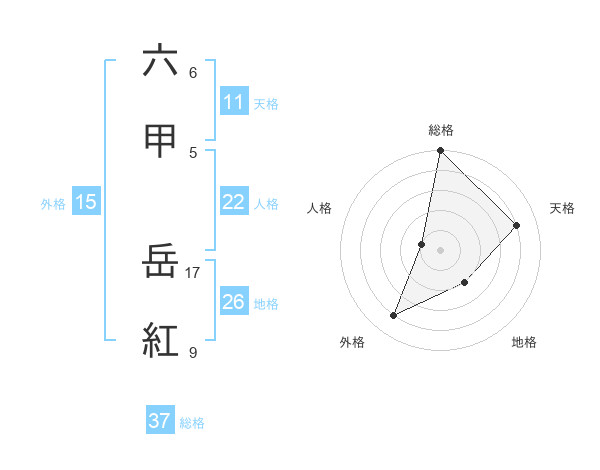 六甲 岳紅さんを姓名の画数から五運を鑑定