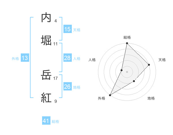 内堀 岳紅さんの外格は13画の5点!
