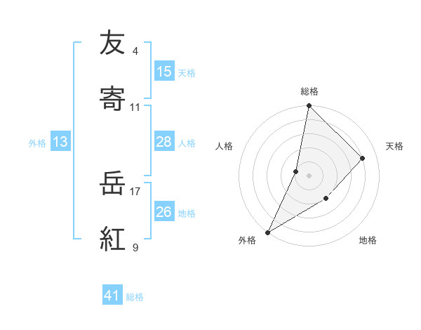 友寄 岳紅さんの天格は15画の4点!