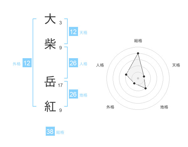 大柴 岳紅さんの総格は38画の4点!