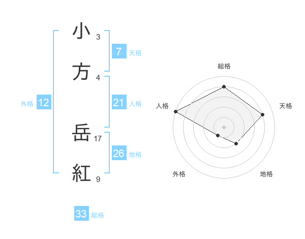 小方 岳紅さんを姓名の画数から五運を鑑定