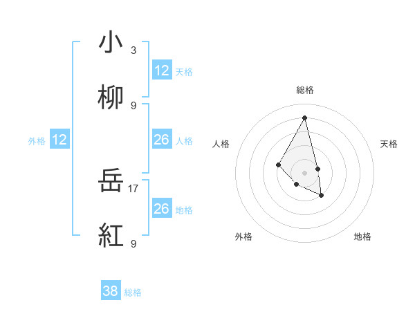 小柳 岳紅さんの総格は38画の4点!