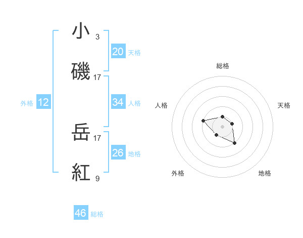 小磯 岳紅さんの総格は46画の1点!