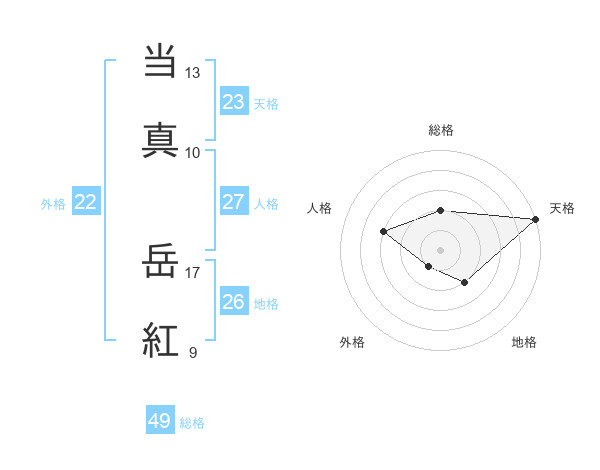 当真 岳紅さんを姓名の画数から五運を鑑定