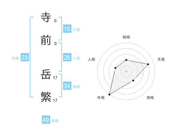 寺前 岳繁さんの総格は49画の2点!