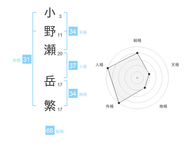 小野瀬 岳繁さんを姓名の画数から五運を鑑定