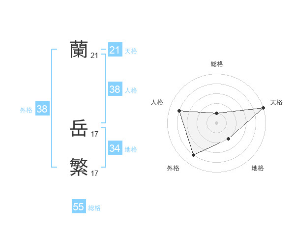 蘭 岳繁さんを姓名の画数から五運を鑑定