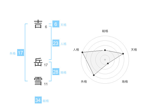吉 岳雪さんの総格は34画の2点!