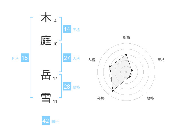木庭 岳雪さんを姓名の画数から五運を鑑定
