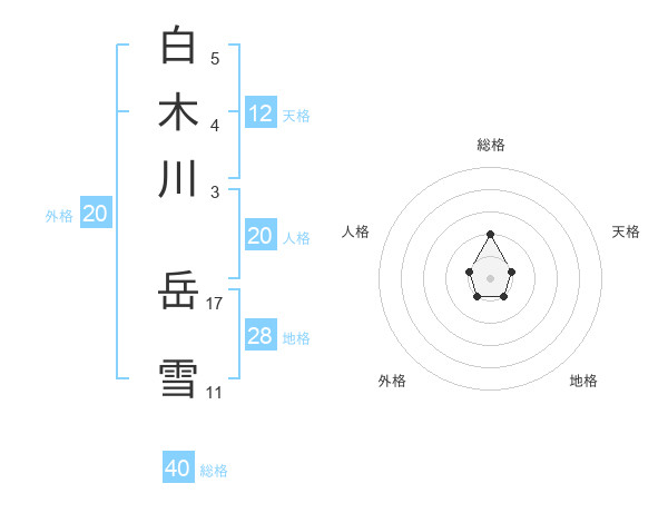 白木川 岳雪さんを姓名の画数から五運を鑑定