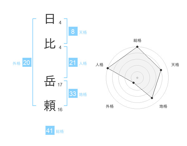 日比 岳頼さんの総格は41画の5点!