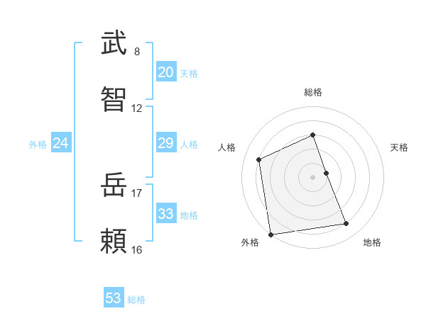 武智 岳頼さんを姓名の画数から五運を鑑定
