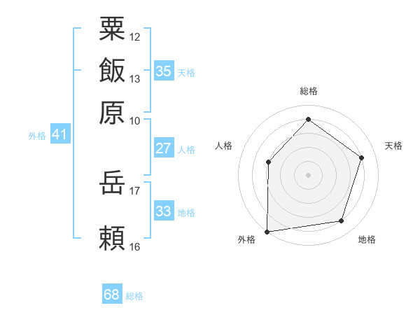 粟飯原 岳頼さんの外格は41画の5点!