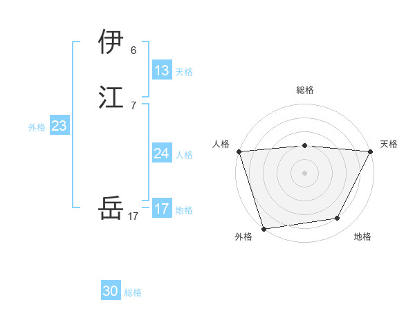 伊江 岳さんの総格は30画の2点!