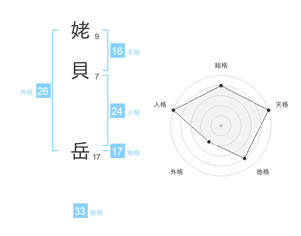 姥貝 岳さんの天格は16画の5点!