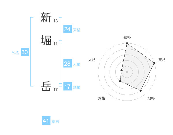 新堀 岳さんの地格は17画の4点!
