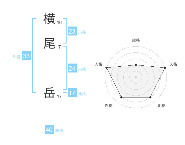 横尾 岳さんの外格は33画の4点!