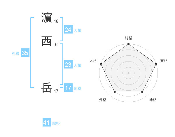 濵西 岳さんの地格は17画の4点!