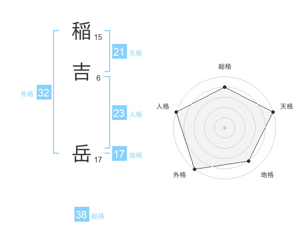 稲吉 岳さんを姓名の画数から五運を鑑定