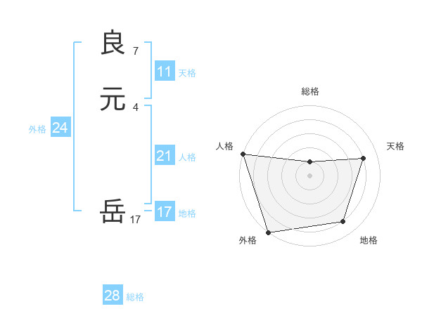 良元 岳さんの総格は28画の1点!