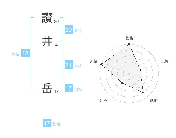 讃井 岳さんの総格は47画の5点!