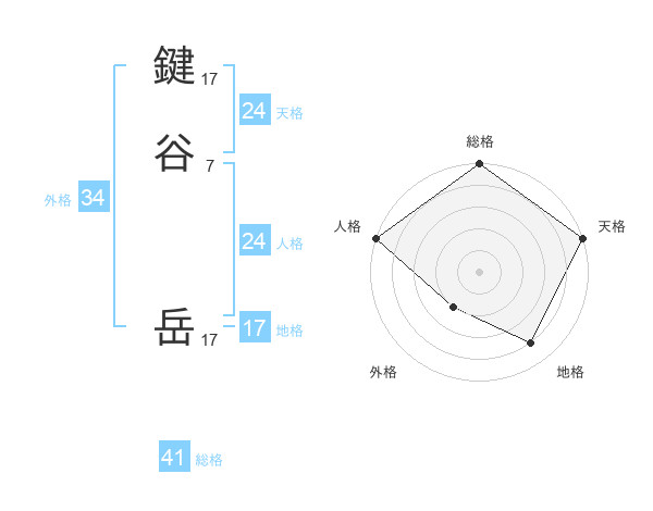鍵谷 岳さんの総格は41画の5点!