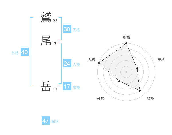 鷲尾 岳さんを姓名の画数から五運を鑑定