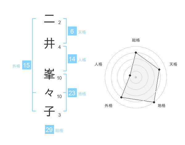 二井 峯々子さんを姓名の画数から五運を鑑定