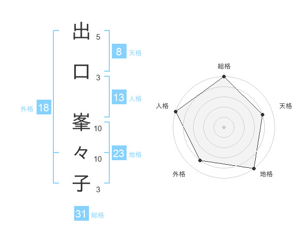 出口 峯々子さんの総格は31画の5点!