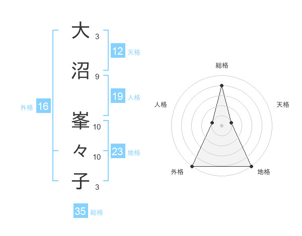 大沼 峯々子さんの総格は35画の4点!
