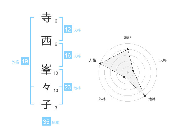寺西 峯々子さんの総格は35画の4点!