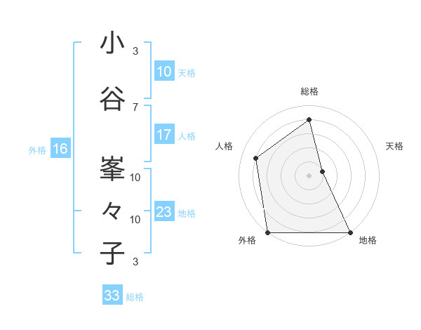 小谷 峯々子さんを姓名の画数から五運を鑑定