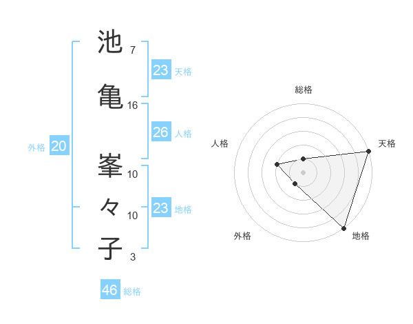 池亀 峯々子さんの天格は23画の5点!