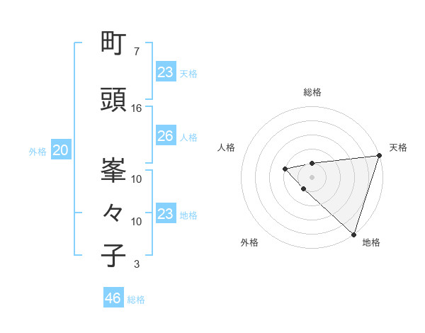 町頭 峯々子さんの天格は23画の5点!