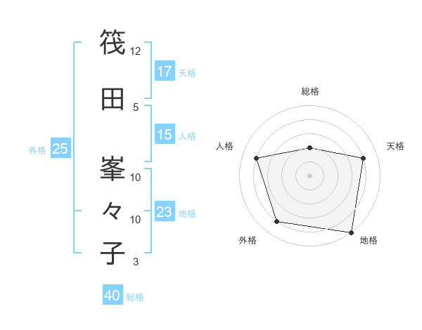 筏田 峯々子さんの総格は40画の2点