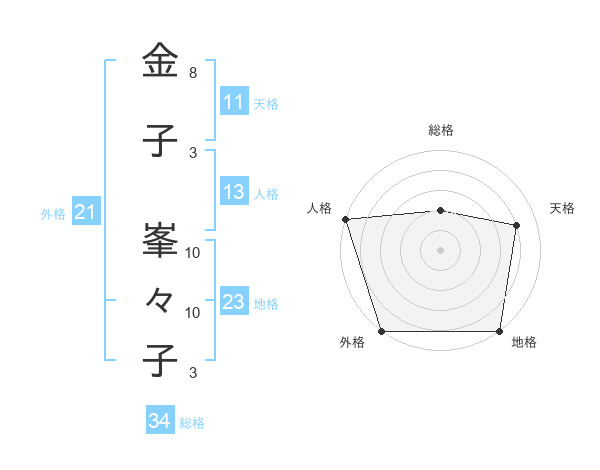 金子 峯々子さんの天格は11画の4点!