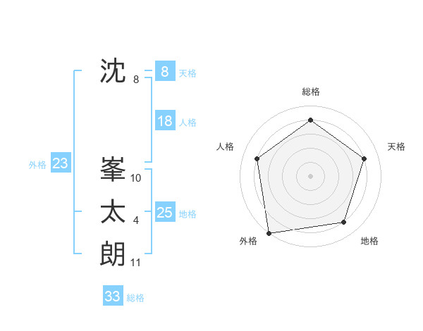 沈 峯太朗さんを姓名の画数から五運を鑑定