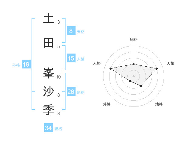 土田 峯沙季さんを姓名の画数から五運を鑑定